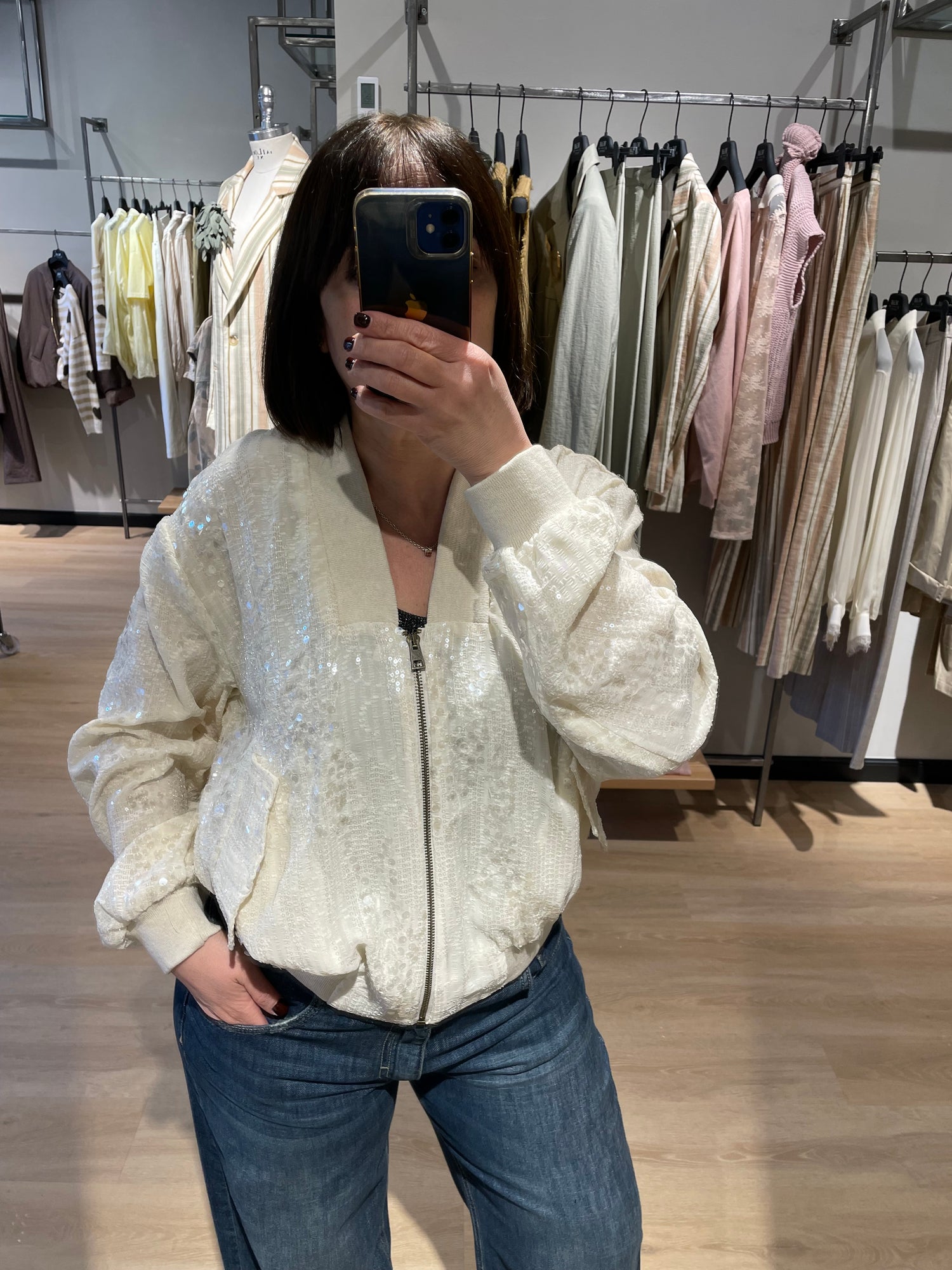 Bellissimo, con una particolare apertura, taglio perfetto, leggermente over, punta di grigio molto piacevole. Super contenta