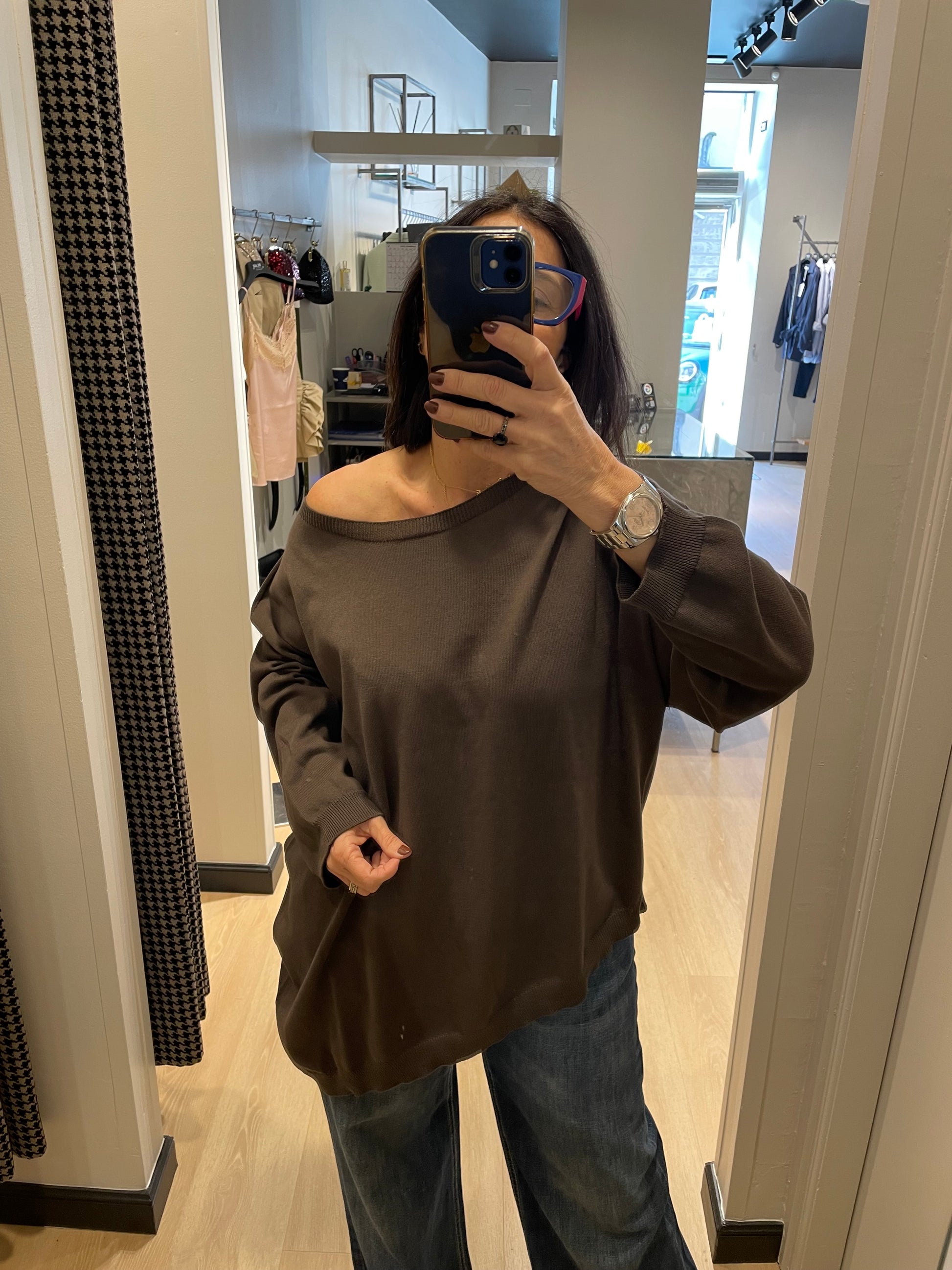 Maglia asimmetrica Susy Mix con scollo a barchetta che incornicia elegantemente le spalle. Taglio unico che si adatta a diverse morfologie grazie alla sua silhouette fluida e bilanciata. Il design asimmetrico crea movimento e dinamismo, perfetto per chi ricerca un capo versatile che passa dal giorno alla sera. Realizzata con attenzione ai dettagli, questa maglia rappresenta un'opzione sofisticata per completare il guardaroba con stile contemporaneo.
