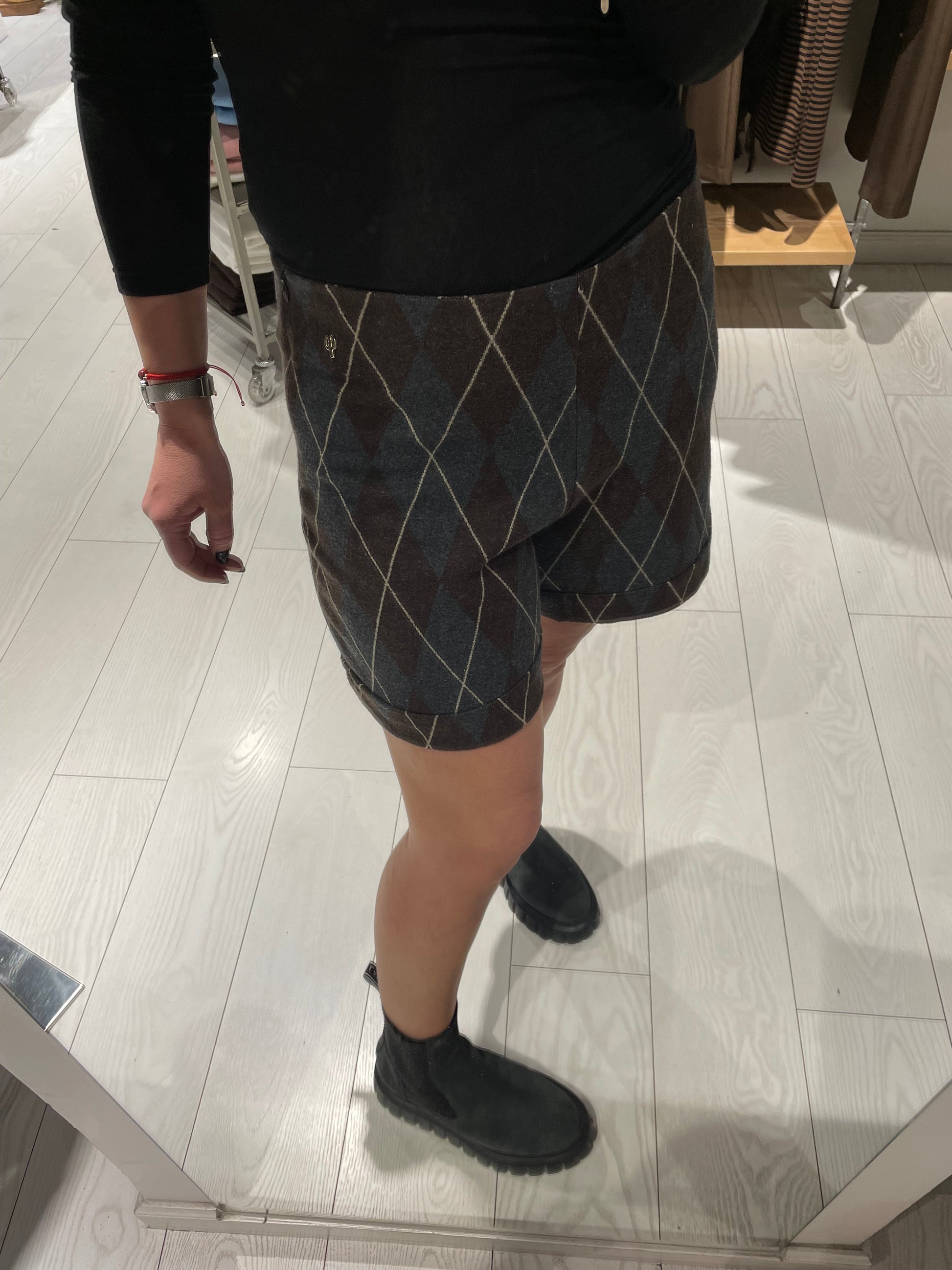 Pantaloncino corto con cerniera laterale, tessuto caldo e morbido, vestibilità morbida, la modella in foto indossa una taglia S ed è alta 1.68 m circa