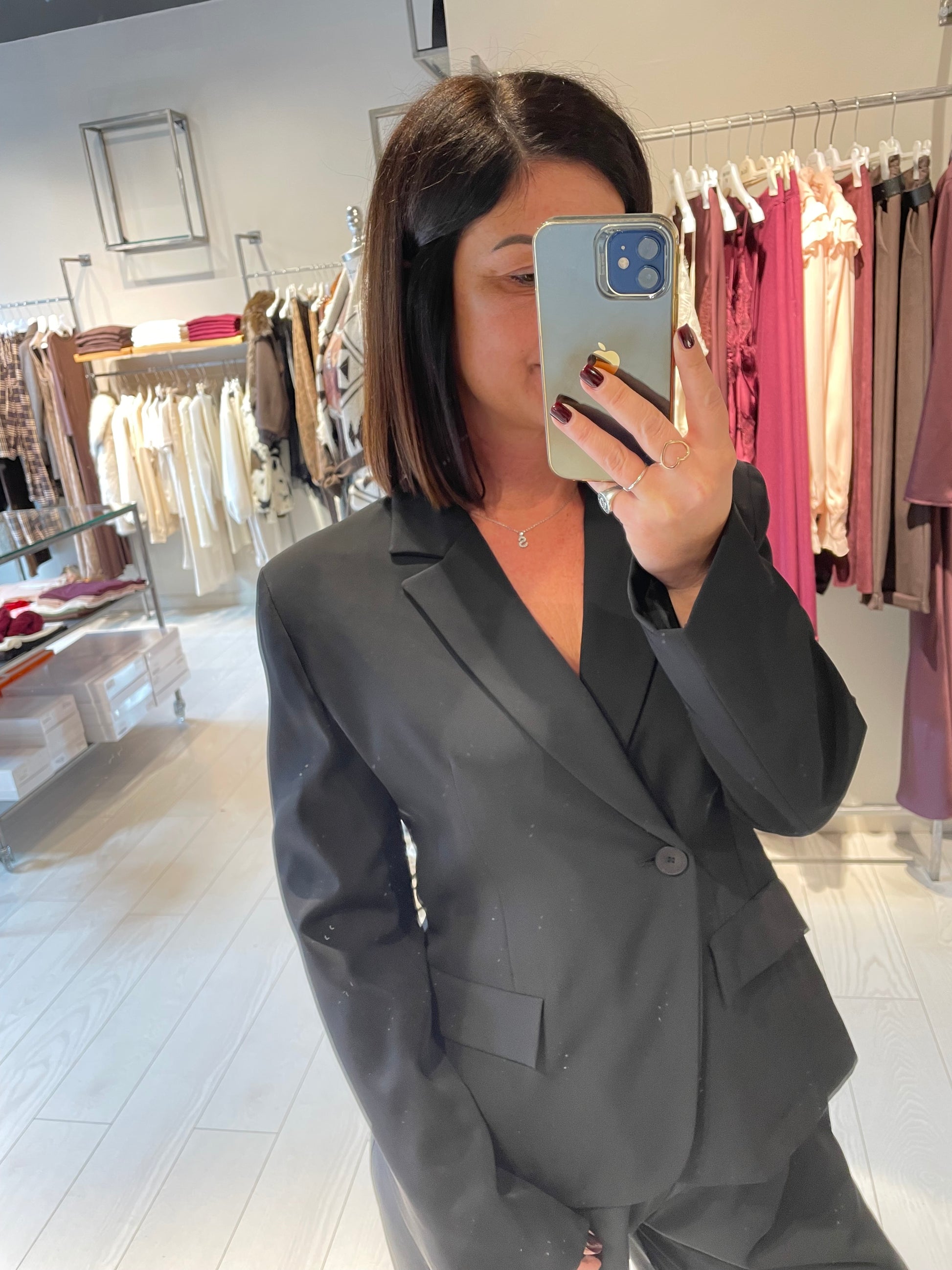 Giacca doppiopetto dalla vestibilità morbida, possibilità di abbinare il suo pantalone a palazzo per creare un completo, la modella in foto indossa una taglia S ed è alta 1,68 m circa