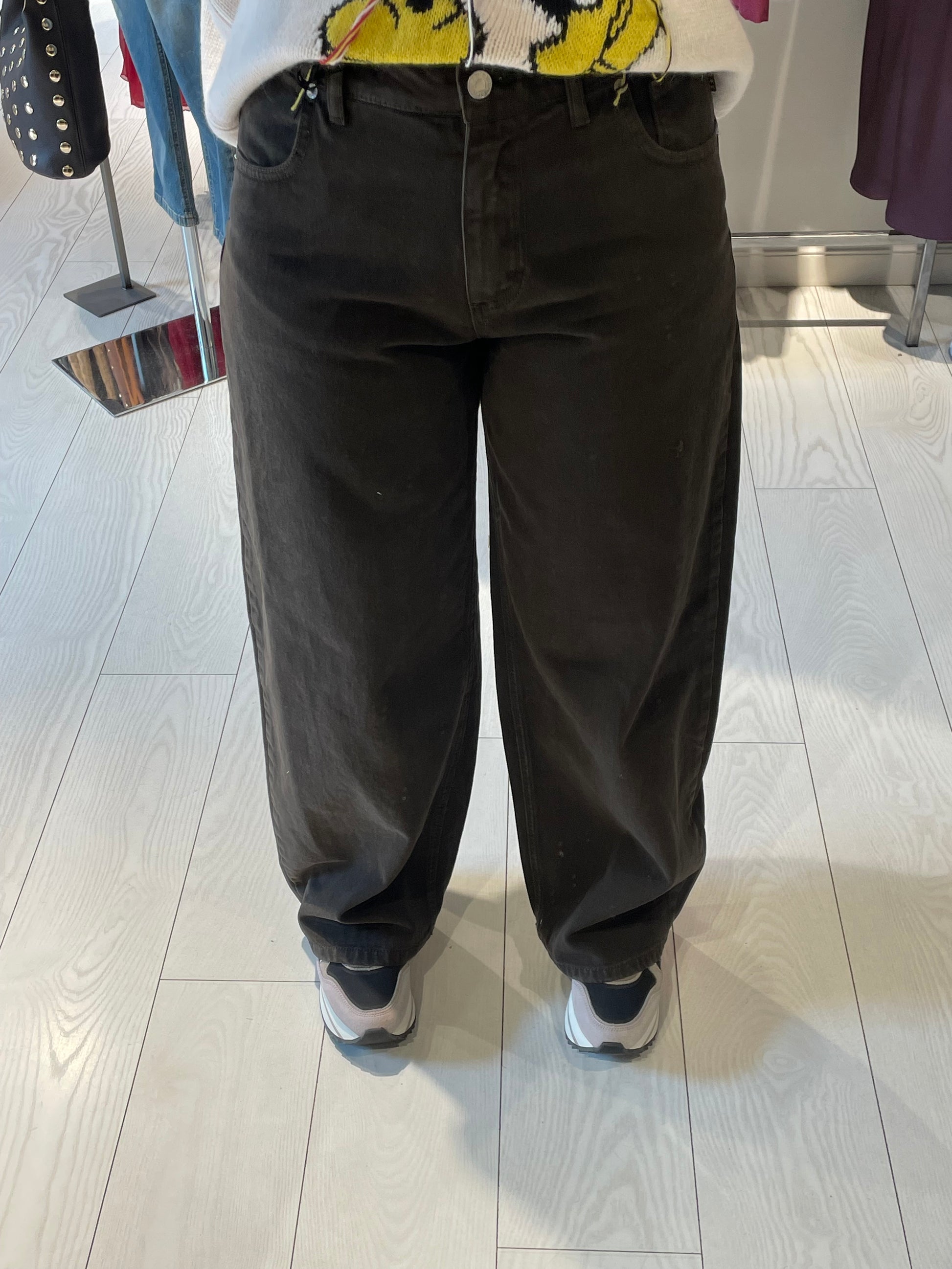 Pantalone in tela di Jeans modello gamba dritta, tela ferma fit regolare, la modella in foto indossa una taglia S ed è alta 1,68 m circa