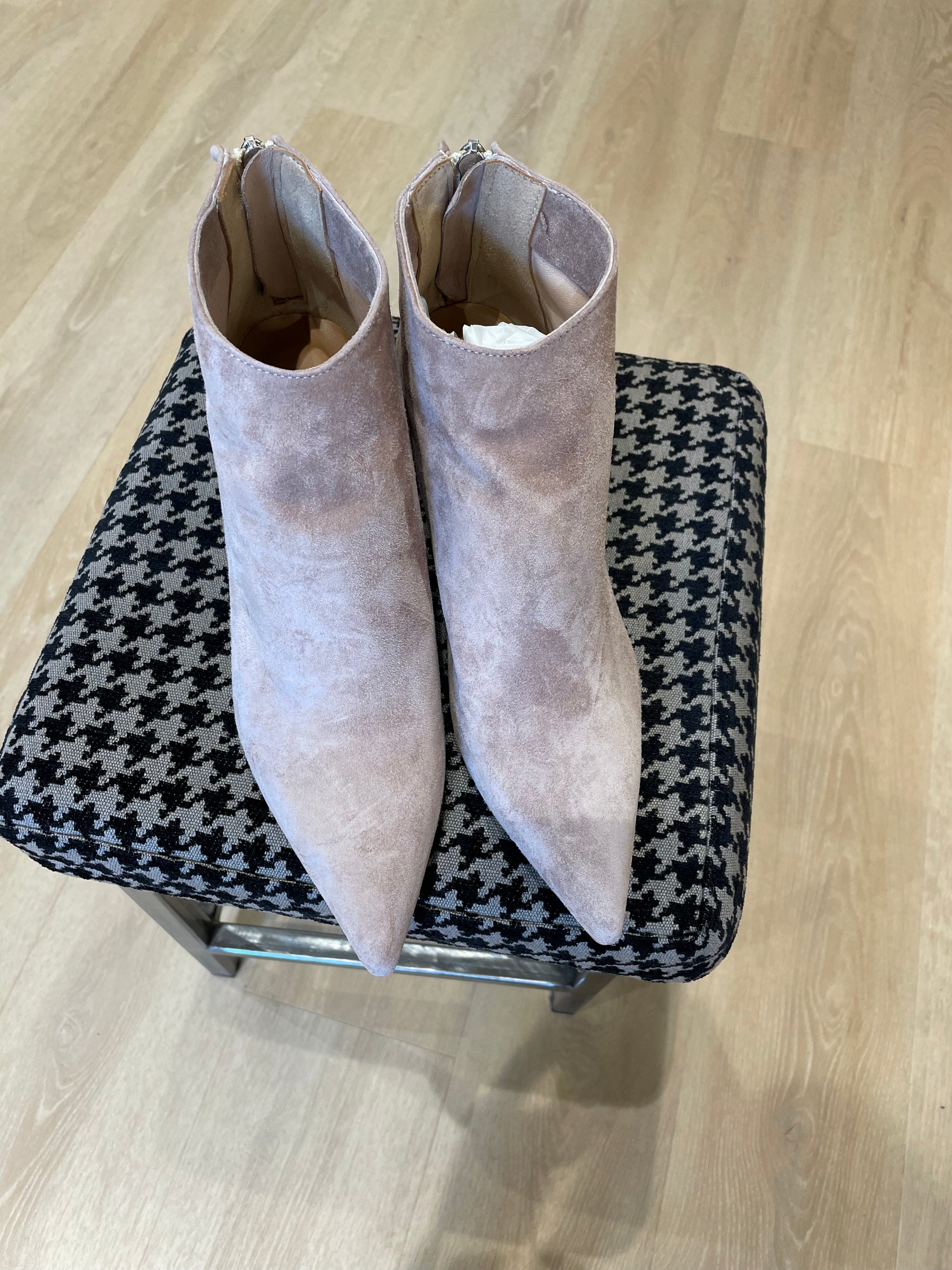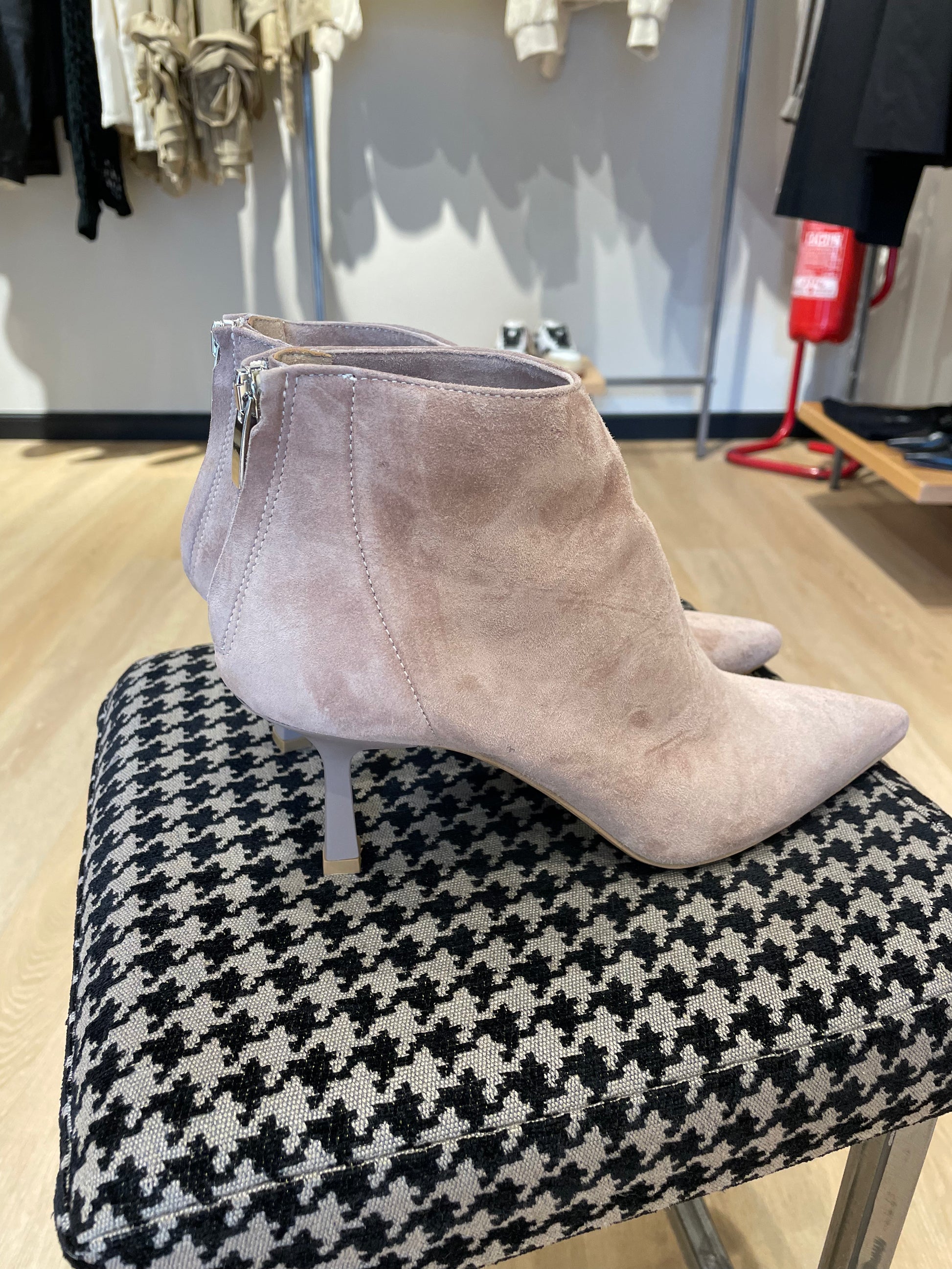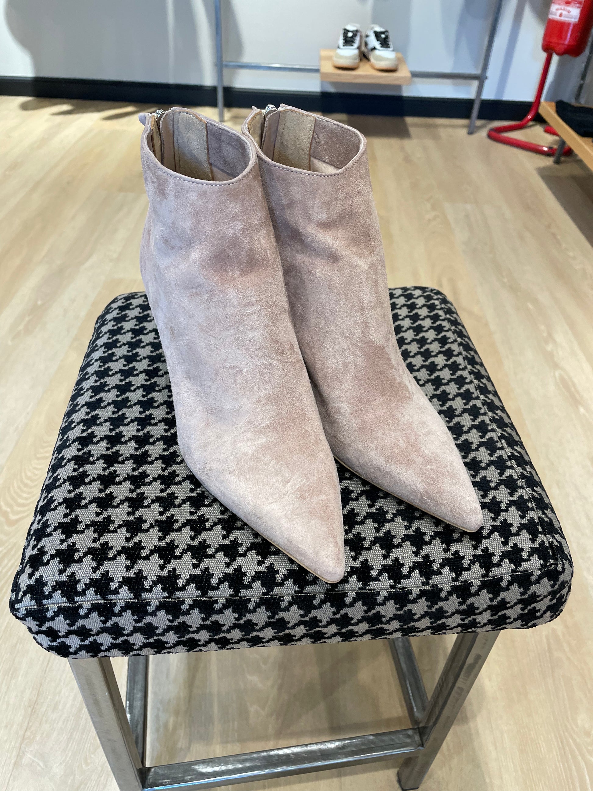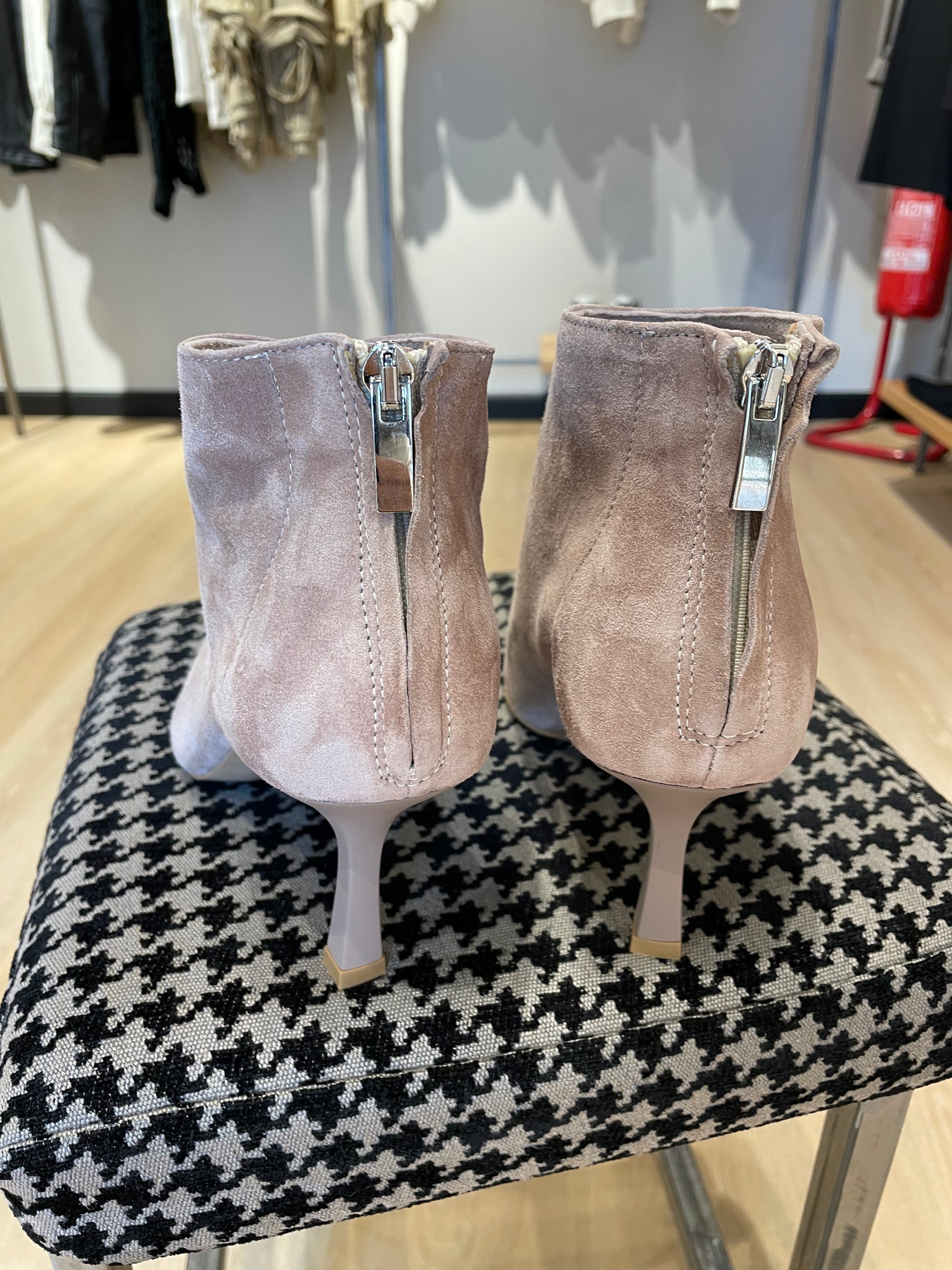 Tronchetto elegante con soletta interna in pelle morbida e rivestimento in camoscio di qualità. Caratterizzato da un comodo tacco di 7 cm che assicura stabilità e stile, è dotato di pratica chiusura a cerniera nella parte posteriore per un indosso facile e veloce. Un capo versatile perfetto per completare look sofisticati sia in occasioni casual che più formali. La calzata è regolare.